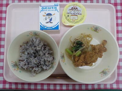 本日の給食 3月19日(木) 卒業お祝い献立 投稿: 編集長 (14:09) 牛乳 お祝い赤米ごはん とり肉の唐揚げ おかか和え 豆乳プリン 今年度の給食は本日で終了です。 1年間ありがとうございました。